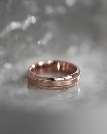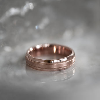 Crafted in 14k or 18k gold, our ring features a fine beaded curved design, with a brushed finish in the center and polished edges along the curve.