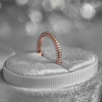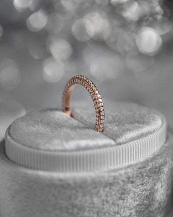 Set with three rows of micro pavé lab grown diamonds, this ring embodies a fusion of celestial inspiration with modern geometric design, perfect for stacking or wearing on its own.