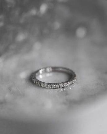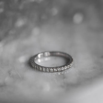 The classic full eternity band with diamonds is perfect for stacking or wearing on its own.